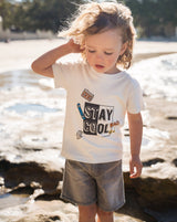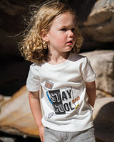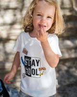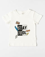 Softly made organic cotton Tee designed for your cool little man. Featuring a playful print of radio tape and a pair of sunglasses, along with slogan " Stay Cool ". An ideal all year round essential for toddler boys . Excellent in absorbance and breathability that keeps him cool and dry.