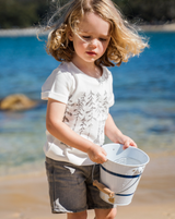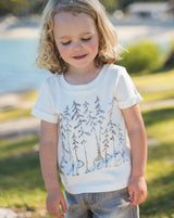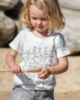 Put the hiking boots on and let him explore the wild natural world. This Softly made organic cotton Explorer Tee is a perfect top to dress your little man for outdoor adventure. Made from the finest 100% interlock organic cotton fabric certified by GOTS , our natural white Explorer T-shirt features rolled up short sleeves and hand-drawn trees with transformed word " EXPLORER". Excellent in absorbedness and breathability.